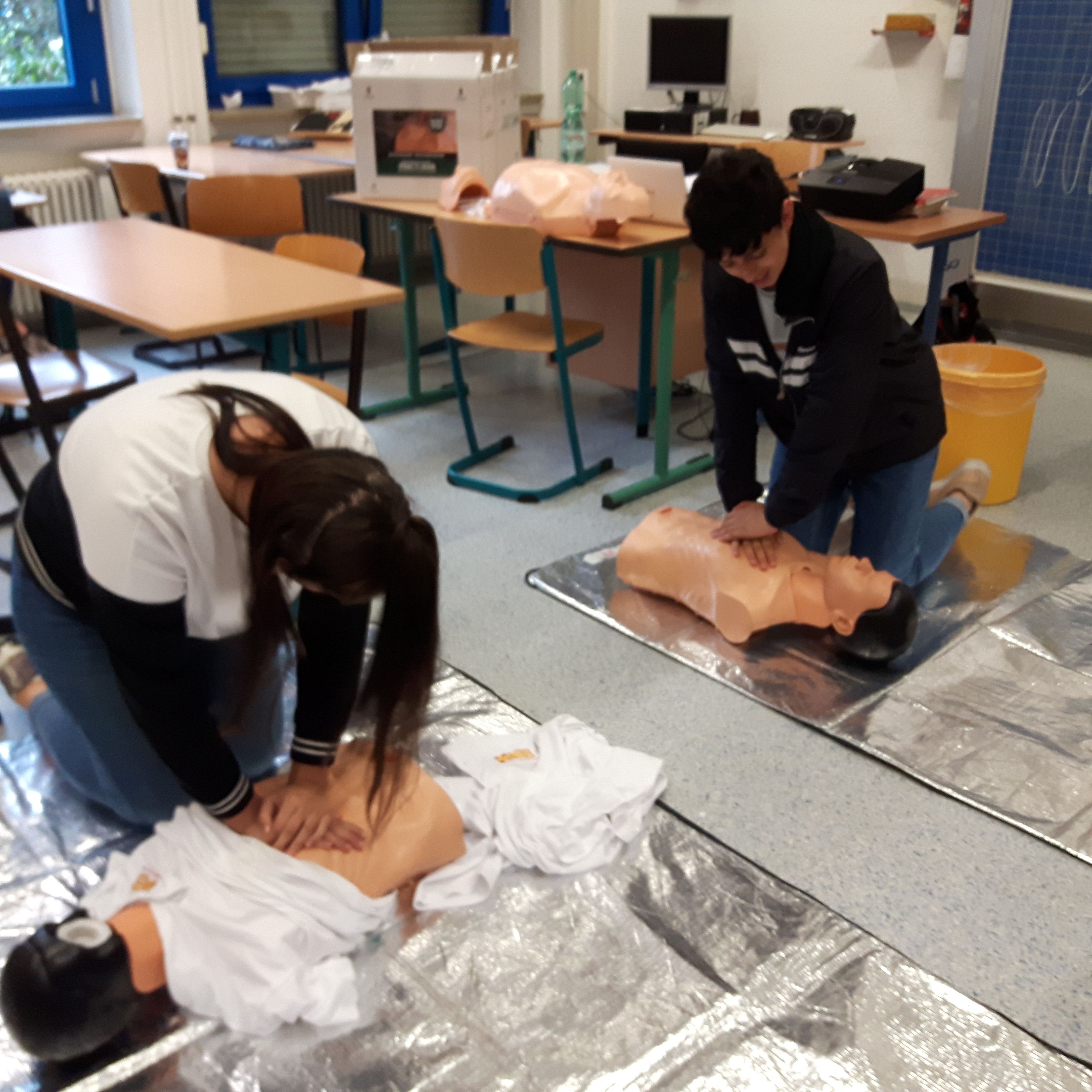 und Schüler unseres Abschlussjahrgangs an einem Erste-Hilfe-Kurs