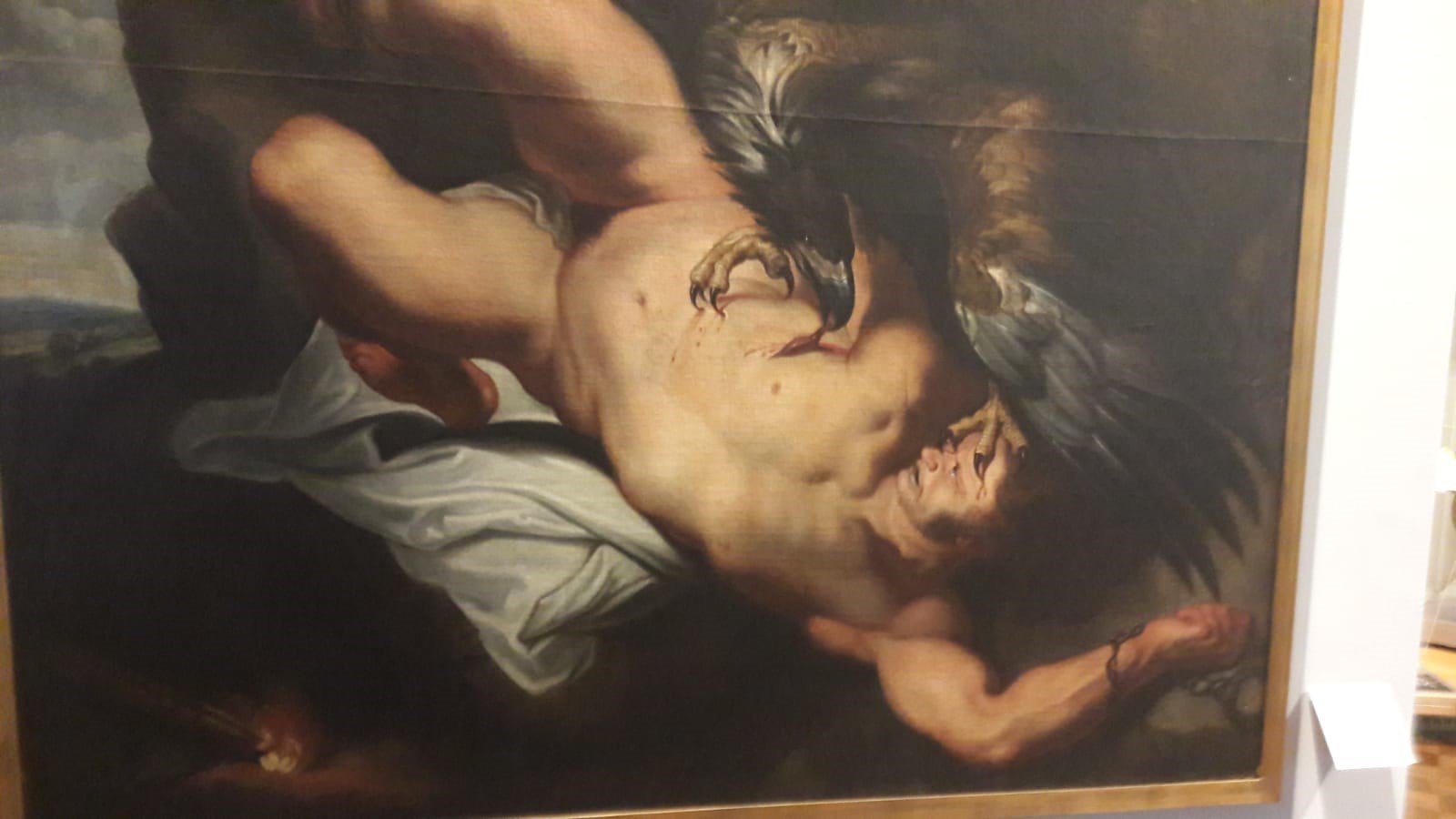 zu Bild 2: „Wir haben uns für dieses Gemälde entschieden, weil es interessant ist, dass Zeus Prometheus bestraft hat, nur weil er den Menschen geholfen und ihnen Feuer geschenkt hat. Außerdem hat er sich somit für die Menschen geopfert.“