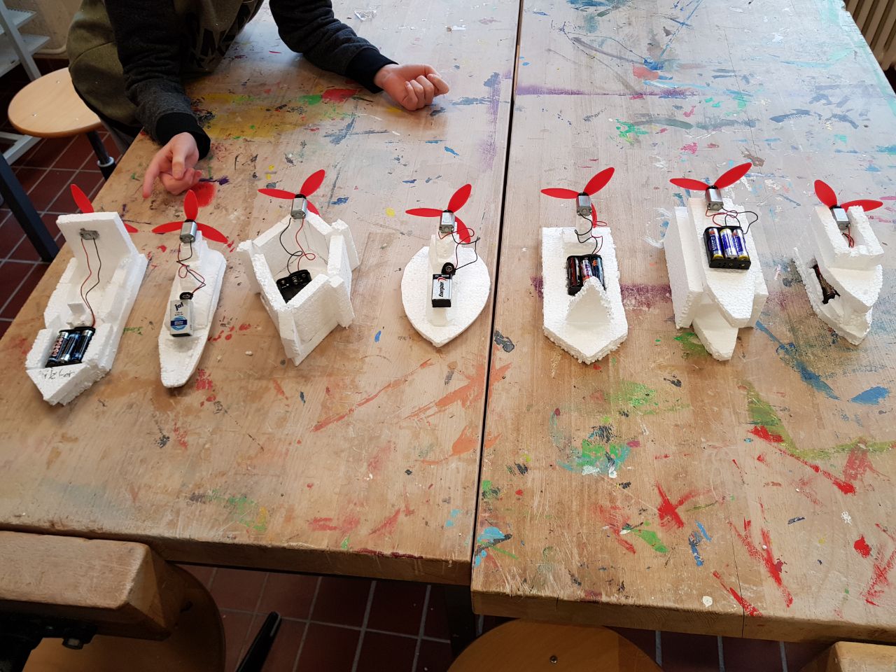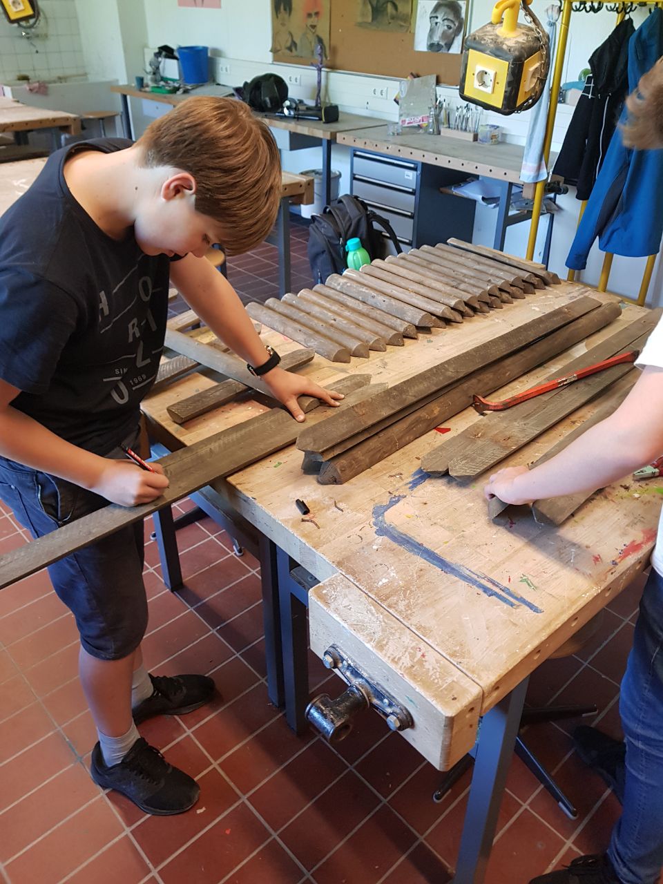 In der Werken-AG arbeiten wir oft mit Materialien wie Holz und Styropor. Auch gehört viel Kreativität dazu, wie zum Beispiel bei dem Bau einer Murmelbahn oder von Styroporbooten mit Elektromotor.