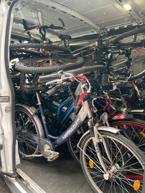 Am 09.02.22 wurden die Fahrräder in der City von Claudia Schroth, Sozialarbeiter Till Görtz (Smile) und Schulsozialarbeiter Sven Eeckhout (ASR) gesichtet, die geeignetsten 25 ausgesucht und mit vereinten Kräften zum Schulzentrum transportiert. Für die sich nun anschließende Überprüfung der Verkehrssicherheit werden wir auch außerschulische Expertinnen und Experten hinzuziehen, sodass unsere Schülerinnen und Schüler anschließend die Räder sicher nutzen können. Für „den Fall der Fälle“ werden wir zudem ausreichend Fahrradhelme anschaffen.