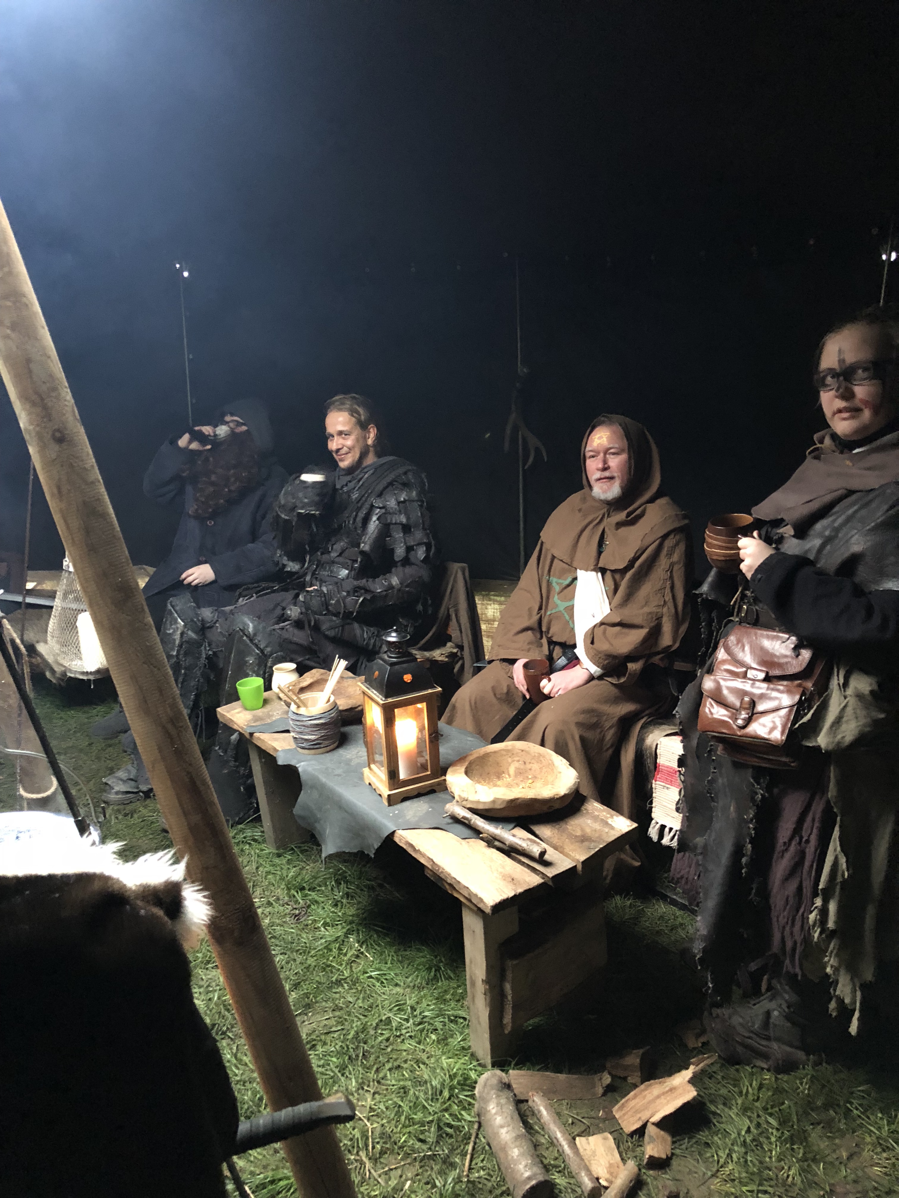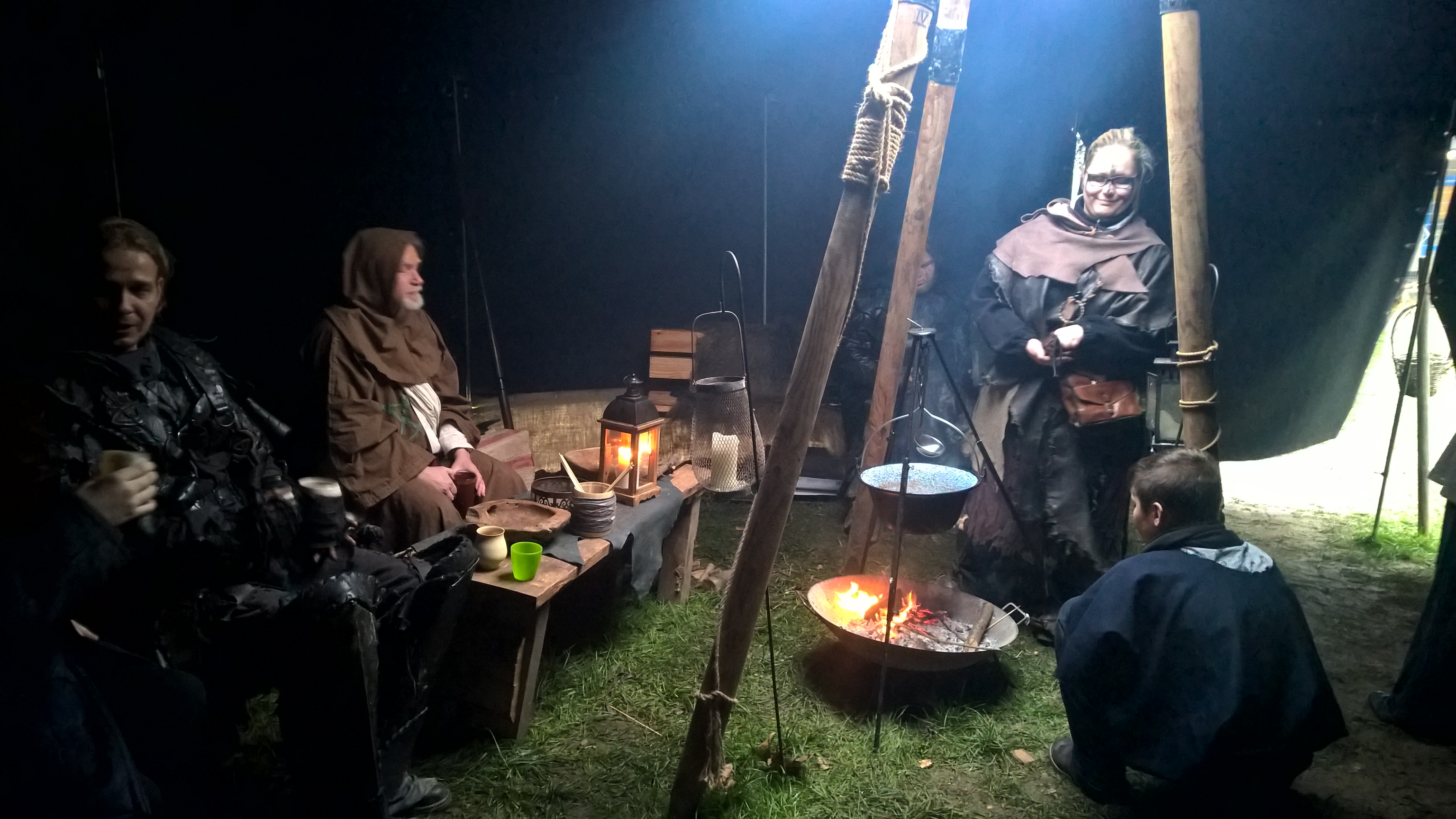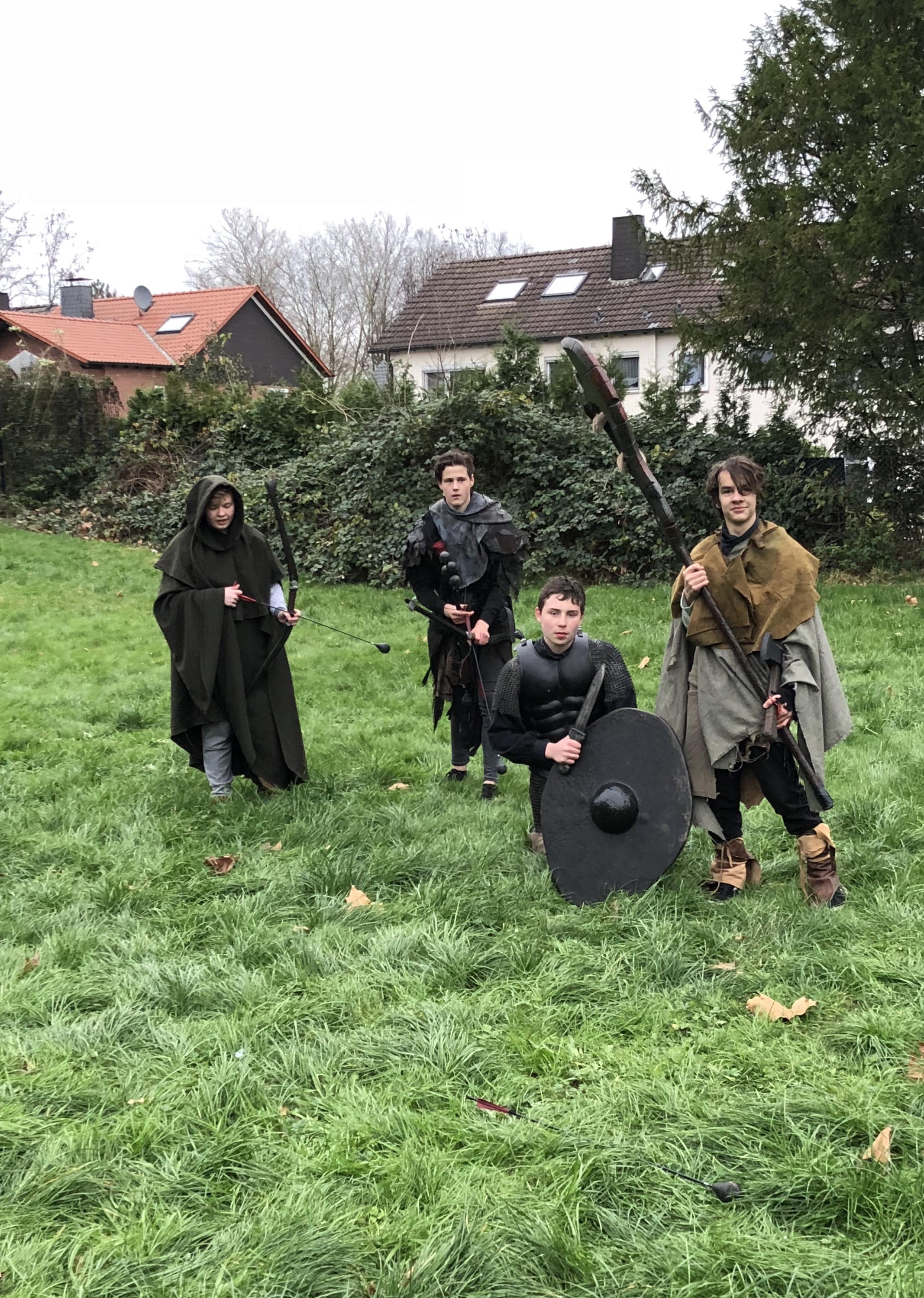 Bereits am Tag zuvor wurden die zwei großen Rundzelte auf der Bolzwiese der Schule von Eeckhout und seinem Schüler-Team errichtet und urig eingerichtet. Am Abend verwandelten die SchülerInnen sich in Waldläufer, Spitzbuben, Zauberer und Krieger und tauchten in eine andere Welt ein, um anschließend ein aufregendes, fantasievolles Abenteuer mit Rätseln, Schatzsuche und Action zu erleben. Ein Vater einer Schülerin braute als Druide über dem Feuer einen warmen Kräutertee und führte mit den kleinen „Recken“ ein magisches Ritual durch. Gefährliche Orks aus Mordor sorgten für Nervenkitzel und der Böseste aller Bösewichte wurde wieder zur „Guten Seite der Macht“ getrieben. Auch Schulleiterin Christel Stegemann wollte am Abend reinschnuppern und miterleben, was der Schulsozi mit seiner LARP-Truppe so ausheckte. Dazu legte sie selbst eigens eine Gewandung an. Sie und alle SchülerInnen waren von der Aktion, die viele Neugierige anlockte, begeistert.