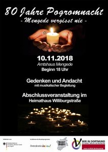 80 Jahre ist es her, dass die Nazis in der sog. Reichskristallnacht die Geschäfte deutscher Juden plünderten und verwüsteten. Für das Mengeder „Netzwerk gegen Rechts“ ein Anlass, in einer Gedenkveranstaltung an die reichsweit organisierten Gewalt- und Schandtaten zu erinnern.