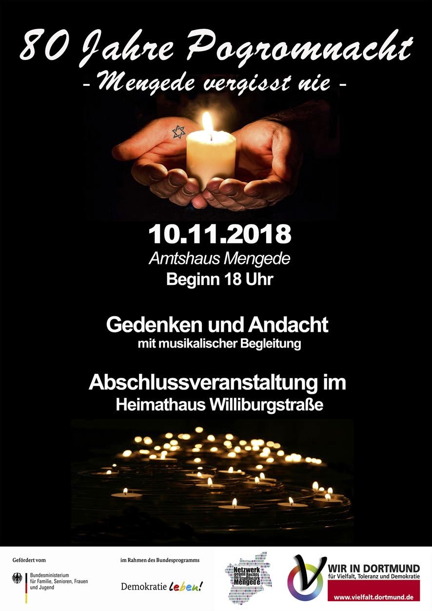 Knapp 100 Menschen aus dem Stadtbezirk Mengede nahmen  an der Gedenkveranstaltung teil – erfreulich groß die Anzahl der Jugendlichen. Begonnen wurde im Mengeder Amtshaus im früheren Gefängnis im Hinterhof des Gebäudes. Danach setzte sich der Zug in Bewegung. Am Saalbau wurde innegehalten, ebenso an der Williburgstraße 6, dem von den Nazis so bezeichneten „Judenhaus“ und auf dem Vorplatz der evgl. St. Remiguskirche.